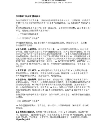 【七哥公文】2025年:【七哥公文】学习教育“回头看”情况报告+更多免费公文+VX:QiGeGongWen2024+更多免费公文+VX:QiGeGongWen2024