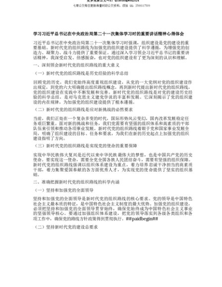 【七哥公文】2025年:【七哥公文】学习习近平总书记在中央ZZ局第二十一次集体学习时的重要讲话精神心得体会+更多免费公文+VX:QiGeGongWen2024+更多免费公文+VX:QiGeGongWen2024