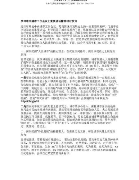【七哥公文】2025年:【七哥公文】学习中央城市工作会议上重要讲话精神研讨发言+更多免费公文+VX:QiGeGongWen2024+更多免费公文+VX:QiGeGongWen2024