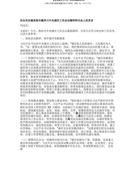 【七哥公文】2025年:【七哥公文】在全市住建系统专题学习中央城市工作会议精神研讨会上的发言+更多免费公文+VX:QiGeGongWen2024+更多免费公文+VX:QiGeGongWen2024