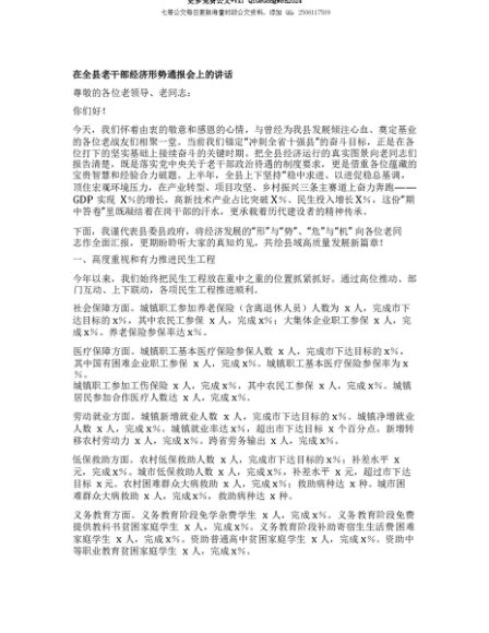 【七哥公文】2025年:【七哥公文】在全县老干部经济形势通报会上的讲话+更多免费公文+VX:QiGeGongWen2024+更多免费公文+VX:QiGeGongWen2024