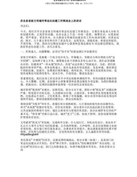 【七哥公文】2025年:【七哥公文】在全县省级文明城市常态化创建工作推进会上的讲话+更多免费公文+VX:QiGeGongWen2024+更多免费公文+VX:QiGeGongWen2024