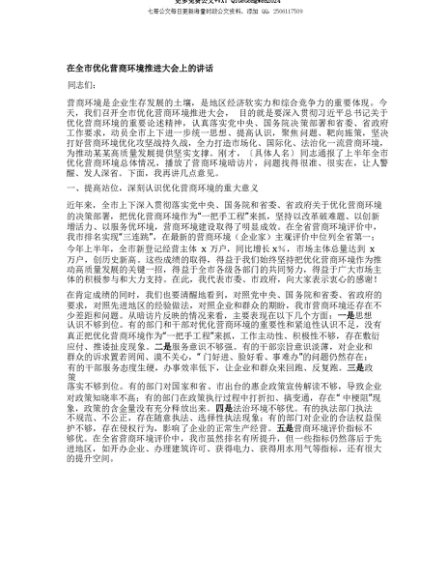 【七哥公文】2025年:【七哥公文】在全市优化营商环境推进大会上的讲话 (2)+更多免费公文+VX:QiGeGongWen2024+更多免费公文+VX:QiGeGongWen2024