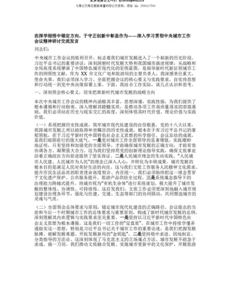 【七哥公文】2025年:【七哥公文】在深学细悟中锚定方向,于守正创新中彰显作为——深入学习贯彻中央城市工作会议精神研讨交流发言+更多免费公文+VX:QiGeGongWen2024+更多免费公文+VX:QiGeGongWen2024