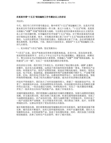 【七哥公文】2025年:【七哥公文】在某某市委“十五五”规划编制工作专题会议上的讲话+更多免费公文+VX:QiGeGongWen2024+更多免费公文+VX:QiGeGongWen2024