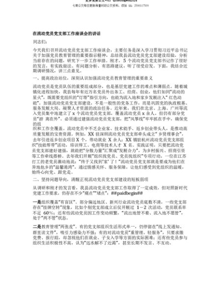 【七哥公文】2025年:【七哥公文】在流动X员X支部工作座谈会的讲话+更多免费公文+VX:QiGeGongWen2024+更多免费公文+VX:QiGeGongWen2024