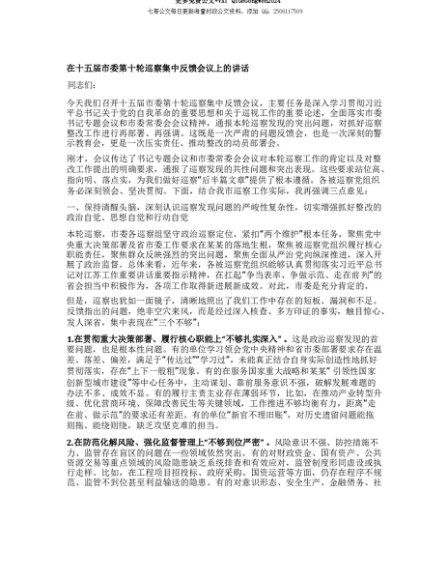 【七哥公文】2025年:【七哥公文】在十五届市委第十轮巡察集中反馈会议上的讲话+更多免费公文+VX:QiGeGongWen2024+更多免费公文+VX:QiGeGongWen2024