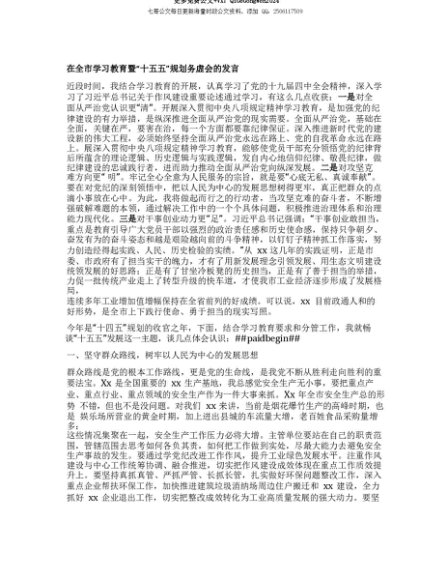 【七哥公文】2025年:【七哥公文】在全市学习教育暨“十五五”规划务虚会的发言+更多免费公文+VX:QiGeGongWen2024+更多免费公文+VX:QiGeGongWen2024