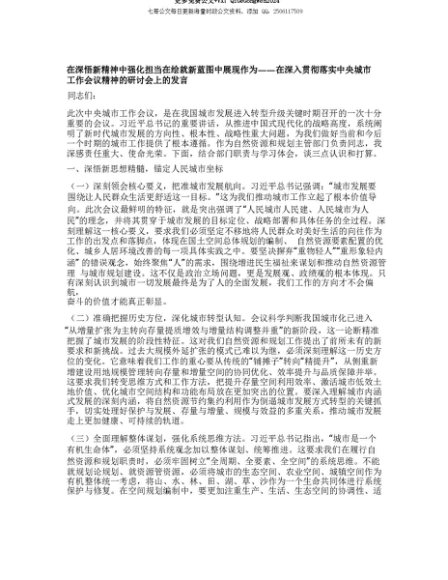 【七哥公文】2025年:【七哥公文】在深悟新精神中强化担当在绘就新蓝图中展现作为——在深入贯彻落实中央城市工作会议精神的研讨会上的发言+更多免费公文+VX:QiGeGongWen2024+更多免费公文+VX:QiGeGongWen2024