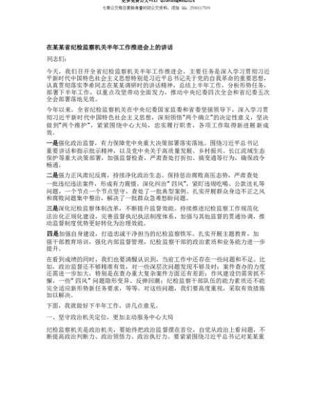 【七哥公文】2025年:【七哥公文】在某某省纪检监察机关半年工作推进会上的讲话+更多免费公文+VX:QiGeGongWen2024+更多免费公文+VX:QiGeGongWen2024