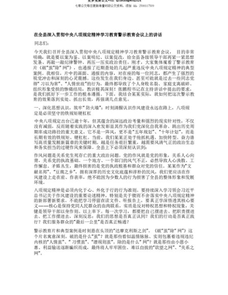 【七哥公文】2025年:【七哥公文】在全县深入贯彻中央BXGD精神学习教育警示教育会议上的讲话+更多免费公文+VX:QiGeGongWen2024+更多免费公文+VX:QiGeGongWen2024