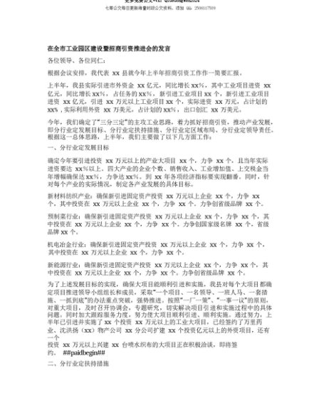 【七哥公文】2025年:【七哥公文】在全市工业园区建设暨招商引资推进会的发言+更多免费公文+VX:QiGeGongWen2024+更多免费公文+VX:QiGeGongWen2024