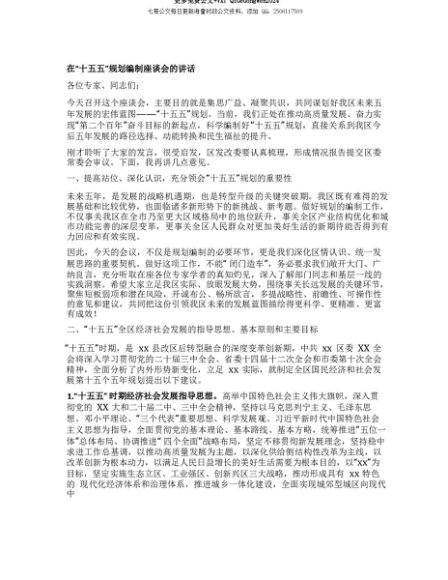 【七哥公文】2025年:【七哥公文】在“十五五”规划编制座谈会的讲话+更多免费公文+VX:QiGeGongWen2024+更多免费公文+VX:QiGeGongWen2024
