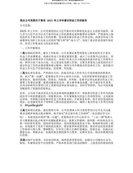 【七哥公文】2025年:【七哥公文】国企公司X委关于落实2025年上半年意识形态工作的报告+更多免费公文+VX:QiGeGongWen2024+更多免费公文+VX:QiGeGongWen2024