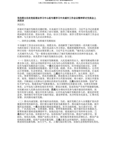 【七哥公文】2025年:【七哥公文】发改委主任在X组理论学习中心组专题学习中央城市工作会议精神研讨交流会上的发言+更多免费公文+VX:QiGeGongWen2024+更多免费公文+VX:QiGeGongWen2024