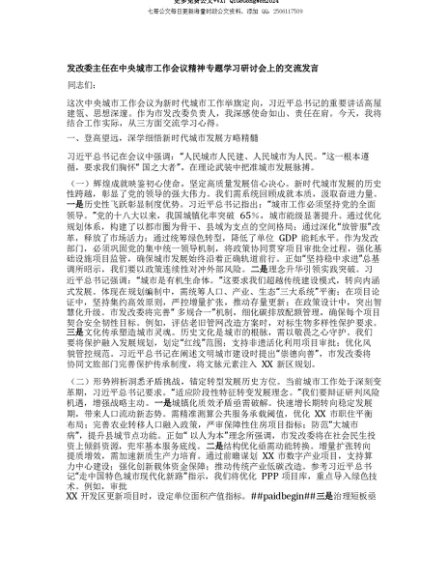 【七哥公文】2025年:【七哥公文】发改委主任在中央城市工作会议精神专题学习研讨会上的交流发言+更多免费公文+VX:QiGeGongWen2024+更多免费公文+VX:QiGeGongWen2024
