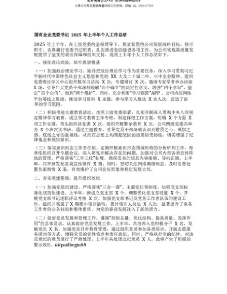 【七哥公文】2025年:【七哥公文】国有企业X委书记2025年上半年个人工作总结+更多免费公文+VX:QiGeGongWen2024+更多免费公文+VX:QiGeGongWen2024