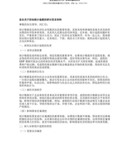 【七哥公文】2025年:【七哥公文】县长关于防治统计造假的研讨发言材料+更多免费公文+VX:QiGeGongWen2024+更多免费公文+VX:QiGeGongWen2024