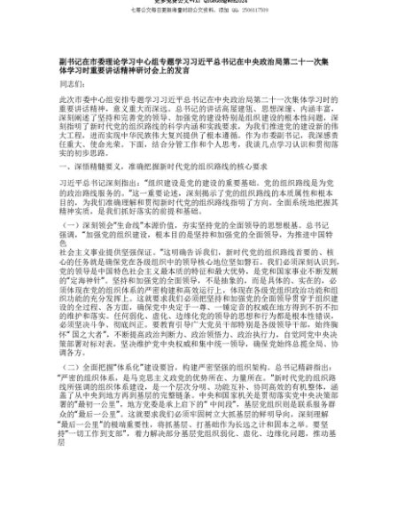 【七哥公文】2025年:【七哥公文】副书记在市委理论学习中心组专题学习习近平总书记在中央ZZ局第二十一次集体学习时重要讲话精神研讨会上的发言+更多免费公文+VX:QiGeGongWen2024+更多免费公文+VX:QiGeGongWen2024