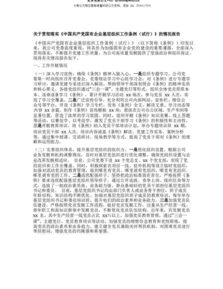 【七哥公文】2025年:【七哥公文】关于贯彻落实《中国共产X国有企业基层组织工作条例(试行)》的情况报告+更多免费公文+VX:QiGeGongWen2024+更多免费公文+VX:QiGeGongWen2024