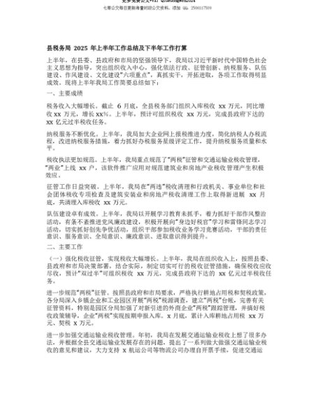 【七哥公文】2025年:【七哥公文】县税务局2025年上半年工作总结及下半年工作打算+更多免费公文+VX:QiGeGongWen2024+更多免费公文+VX:QiGeGongWen2024