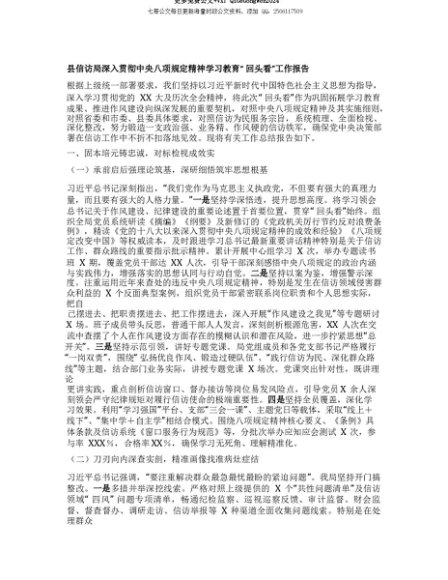 【七哥公文】2025年:【七哥公文】县信访局深入贯彻中央BXGD精神学习教育“回头看”工作报告+更多免费公文+VX:QiGeGongWen2024+更多免费公文+VX:QiGeGongWen2024
