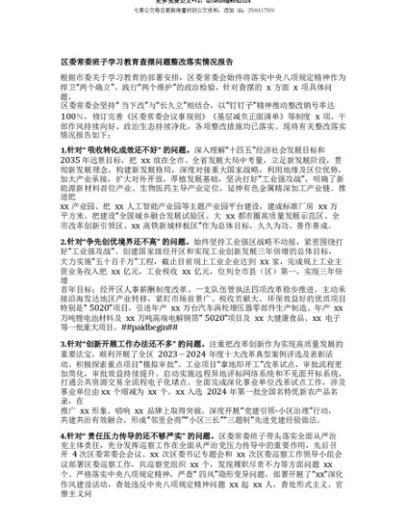 【七哥公文】2025年:【七哥公文】区委常委班子学习教育查摆问题整改落实情况报告+更多免费公文+VX:QiGeGongWen2024+更多免费公文+VX:QiGeGongWen2024