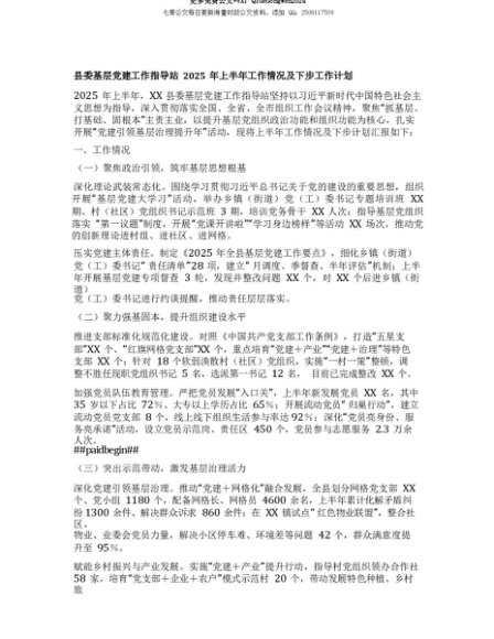 【七哥公文】2025年:【七哥公文】县委基层X建工作指导站2025年上半年工作情况及下步工作计划+更多免费公文+VX:QiGeGongWen2024+更多免费公文+VX:QiGeGongWen2024