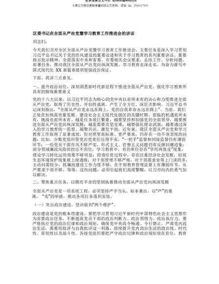 【七哥公文】2025年:【七哥公文】区委书记在全面从严治X暨学习教育工作推进会的讲话+更多免费公文+VX:QiGeGongWen2024+更多免费公文+VX:QiGeGongWen2024