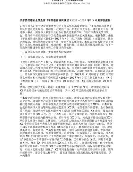 【七哥公文】2025年:【七哥公文】关于贯彻落实全国全省《干部教育培训规划(2023-2027年)》中期评估报告+更多免费公文+VX:QiGeGongWen2024+更多免费公文+VX:QiGeGongWen2024