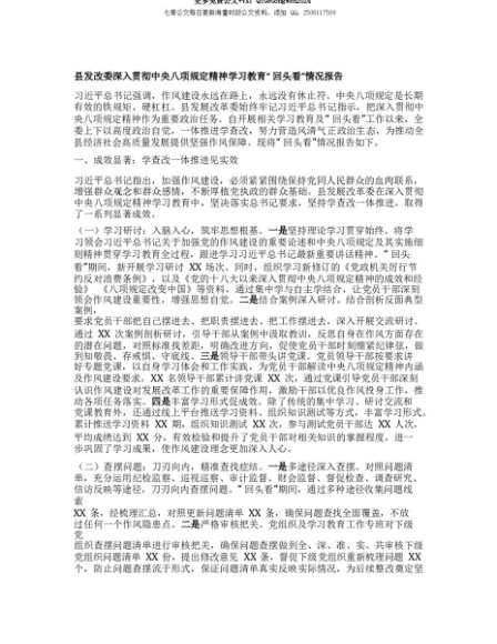 【七哥公文】2025年:【七哥公文】县发改委深入贯彻中央BXGD精神学习教育“回头看”情况报告+更多免费公文+VX:QiGeGongWen2024+更多免费公文+VX:QiGeGongWen2024