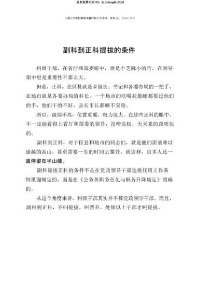 【七哥公文】2025年:【七哥公文】副科到正科提拔的条件+更多免费公文+VX:QiGeGongWen2024+更多免费公文+VX:QiGeGongWen2024