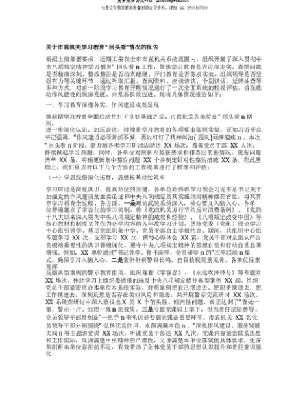 【七哥公文】2025年:【七哥公文】关于市直机关学习教育“回头看”情况的报告+更多免费公文+VX:QiGeGongWen2024+更多免费公文+VX:QiGeGongWen2024