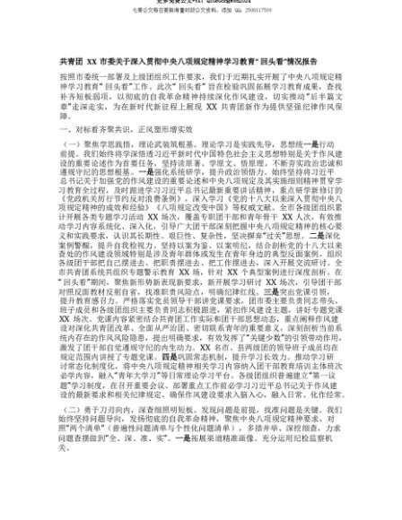 【七哥公文】2025年:【七哥公文】共青团XX市委关于深入贯彻中央BXGD精神学习教育“回头看”情况报告+更多免费公文+VX:QiGeGongWen2024+更多免费公文+VX:QiGeGongWen2024
