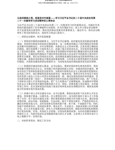 【七哥公文】2025年:【七哥公文】以组织路线之笔,绘强X兴市新篇——学习习近平总书记在二十届中央ZZ局第二十一次集体学习讲话精神的心得体会+更多免费公文+VX:QiGeGongWen2024+更多免费公文+VX:QiGeGongWen2024