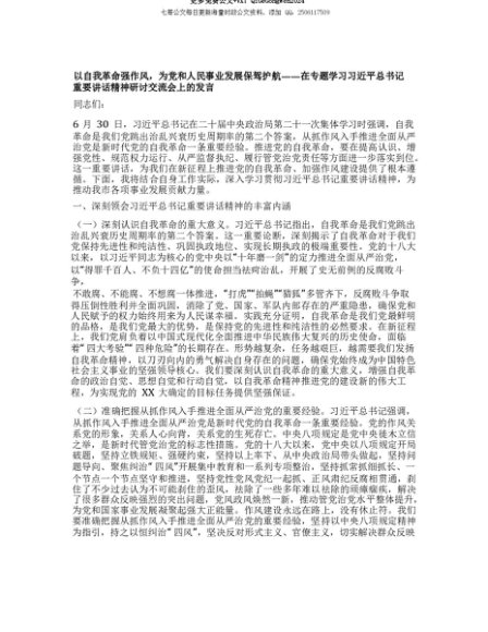 【七哥公文】2025年:【七哥公文】以自我革命强作风,为X和人民事业发展保驾护航——在专题学习习近平总书记重要讲话精神研讨交流会上的发言+更多免费公文+VX:QiGeGongWen2024+更多免费公文+VX:QiGeGongWen2024