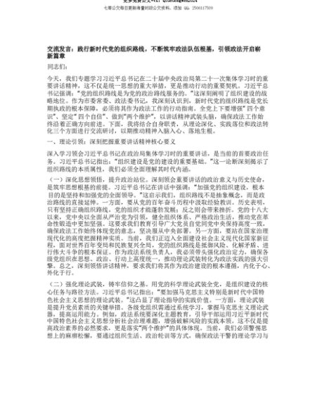 【七哥公文】2025年:【七哥公文】交流发言:践行新时代X的组织路线,不断筑牢政法队伍根基,引领政法开启崭新篇章+更多免费公文+VX:QiGeGongWen2024+更多免费公文+VX:QiGeGongWen2024