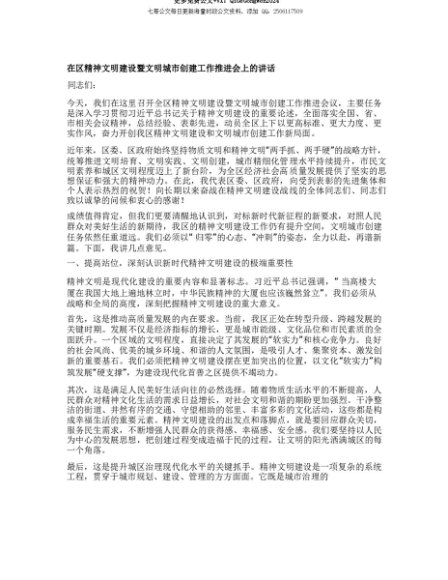 【七哥公文】2025年:【七哥公文】【团队精品】在在区精神文明建设暨文明城市创建工作推进会上的讲话+更多免费公文+VX:QiGeGongWen2024+更多免费公文+VX:QiGeGongWen2024