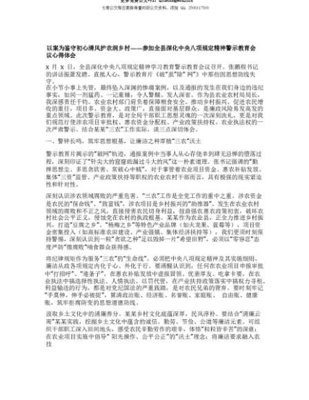 【七哥公文】2025年:【七哥公文】以案为鉴守初心清风护农润乡村 ——参加全县深化中央BXGD精神警示教育会议心得体会+更多免费公文+VX:QiGeGongWen2024+更多免费公文+VX:QiGeGongWen2024