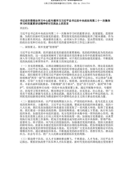 【七哥公文】2025年:【七哥公文】书记在市委理论学习中心组专题学习习近平总书记在中央ZZ局第二十一次集体学习时的重要讲话精神研讨交流会上的发言+更多免费公文+VX:QiGeGongWen2024+更多免费公文+VX:QiGeGongWen2024