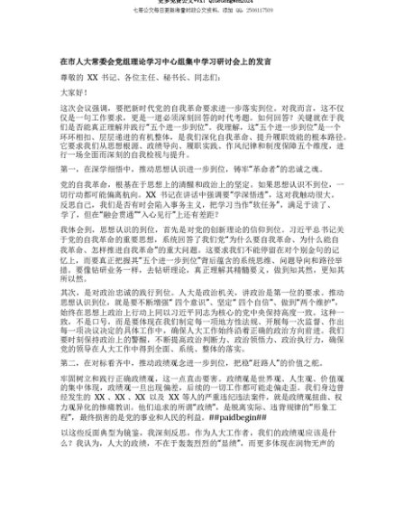 【七哥公文】2025年:【七哥公文】【团队精品】在市人大常委会X组理论学习中心组集中学习研讨会上的发言(五个进一步到位)+更多免费公文+VX:QiGeGongWen2024+更多免费公文+VX:QiGeGongWen2024