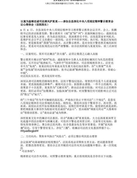 【七哥公文】2025年:【七哥公文】以案为鉴铸忠诚司法清风护某某 ——参加全县深化中央BXGD精神警示教育会议心得体会(法院院长)+更多免费公文+VX:QiGeGongWen2024+更多免费公文+VX:QiGeGongWen2024