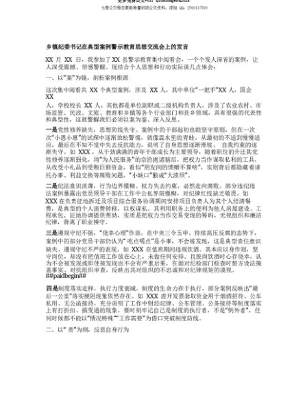 【七哥公文】2025年:【七哥公文】乡镇纪委书记在典型案例警示教育思想交流会上的发言+更多免费公文+VX:QiGeGongWen2024+更多免费公文+VX:QiGeGongWen2024