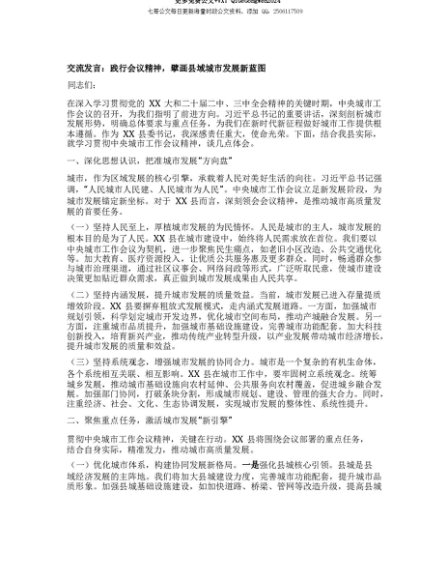 【七哥公文】2025年:【七哥公文】交流发言:践行会议精神,擘画县域城市发展新蓝图+更多免费公文+VX:QiGeGongWen2024+更多免费公文+VX:QiGeGongWen2024