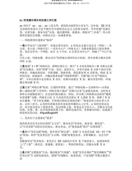 【七哥公文】2025年:【七哥公文】Xx村X建引领乡村治理工作汇报+更多免费公文+VX:QiGeGongWen2024+更多免费公文+VX:QiGeGongWen2024