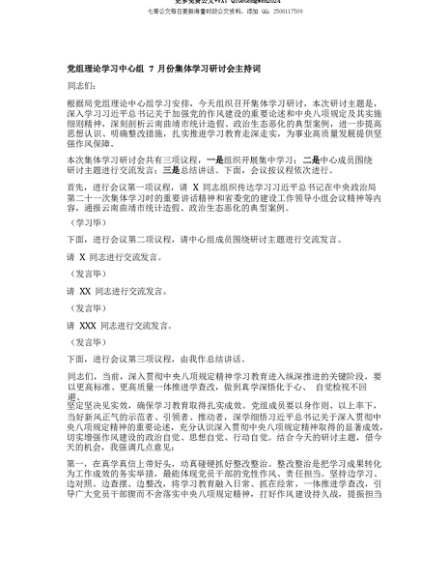 【七哥公文】2025年:【七哥公文】X组理论学习中心组7月份集体学习研讨会主持词+更多免费公文+VX:QiGeGongWen2024+更多免费公文+VX:QiGeGongWen2024