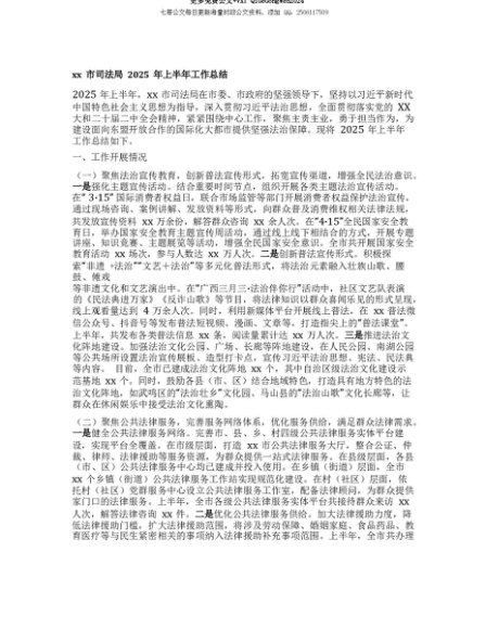【七哥公文】2025年:【七哥公文】xx市司法局2025年上半年工作总结+更多免费公文+VX:QiGeGongWen2024+更多免费公文+VX:QiGeGongWen2024