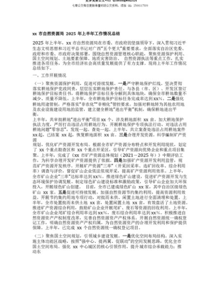 【七哥公文】2025年:【七哥公文】xx市自然资源局2025年上半年工作情况总结+更多免费公文+VX:QiGeGongWen2024+更多免费公文+VX:QiGeGongWen2024