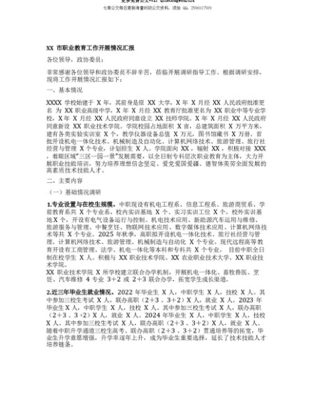 【七哥公文】2025年:【七哥公文】XX市职业教育工作开展情况汇报+更多免费公文+VX:QiGeGongWen2024+更多免费公文+VX:QiGeGongWen2024