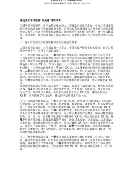 【七哥公文】2025年:【七哥公文】X校关于学习教育“回头看”情况报告+更多免费公文+VX:QiGeGongWen2024+更多免费公文+VX:QiGeGongWen2024